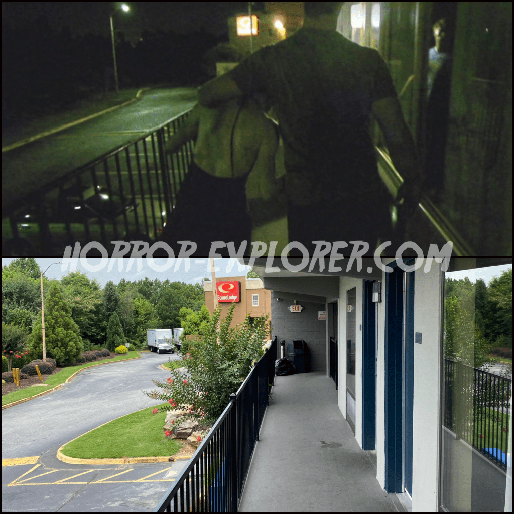 I went back to the movie and for a split second you can see an Econo Lodge sign in the background, so I started there. I found it in Conley, GA, just off of 285 outside Atlanta. They actually are at the Hilltop Inn, and the Econo Lodge next door can be seen in the background. It literally is in the movie for all of 3 seconds, but I thought it was interesting and fun to find all the same. The interior of the motel room and the ending of the tape where he runs to the lobby and into the parking lot was filmed at the America’s Best Value Inn in Stone Mountain, GA. At the time of filming it was called the Aloha Motor Inn which is what it is credited as in the movie.