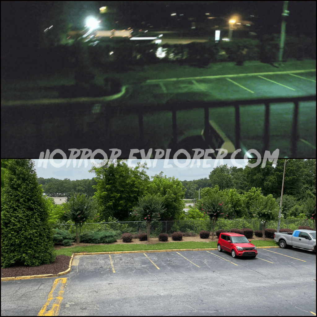 The different segments in V/H/S were filmed in different states, but the ‘Amateur Night’ segment was filmed here in Georgia and as soon as I realized it, I jumped on finding the exact locations. The bar scenes were easy because you can see the Mary’s logo in the background, and there was a motel credited at the end of the movie so that seemed like an easy find too, but I couldn’t exactly match it up to some of the shots shown in the movie. Some of them I could, but the shots of the group arriving at the room and the one guy frantically running out showed a second story motel and this one only had one floor.