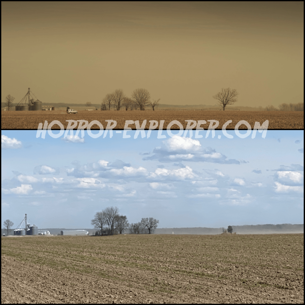 The address above is where the grain silos are located. The trees and where they were actually driving is the next dirt road heading west, County Road 444. I pulled onto an unmarked dirt road just west of there to line up the shot.