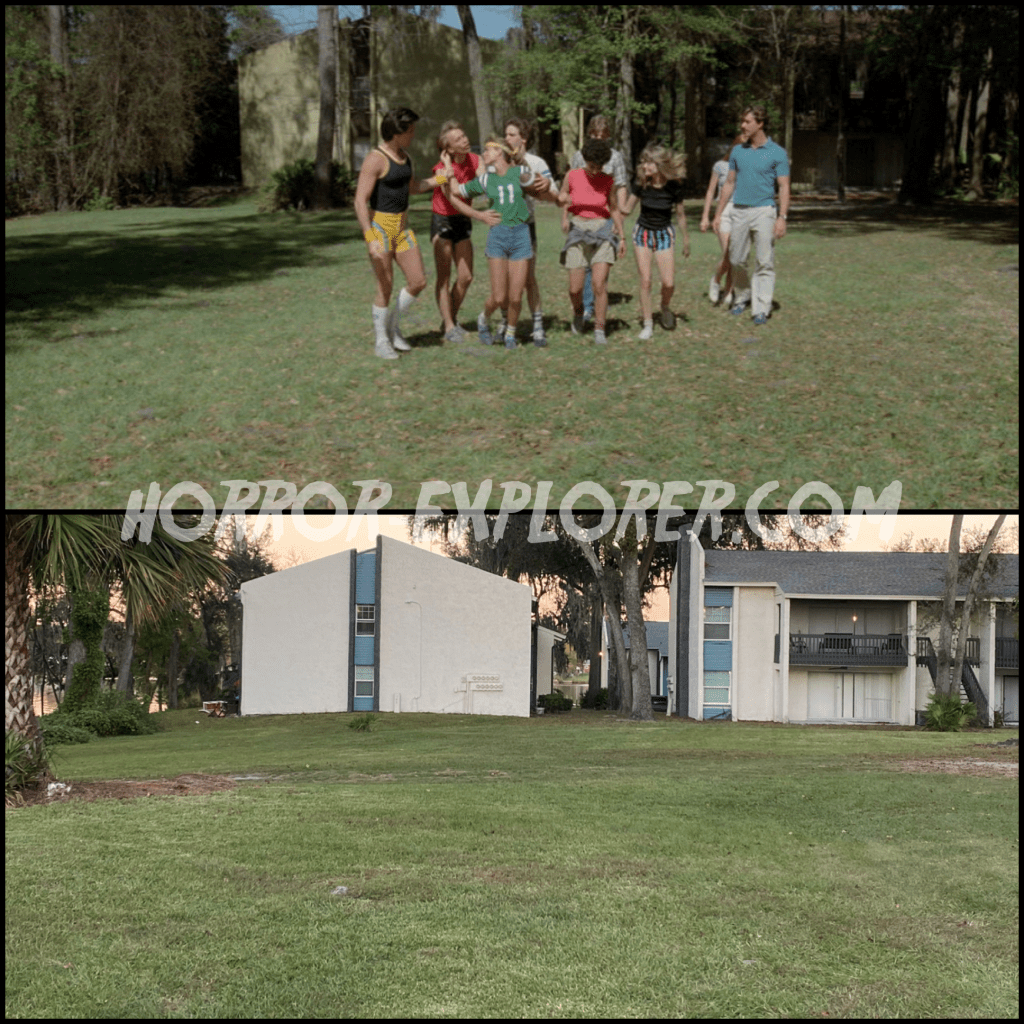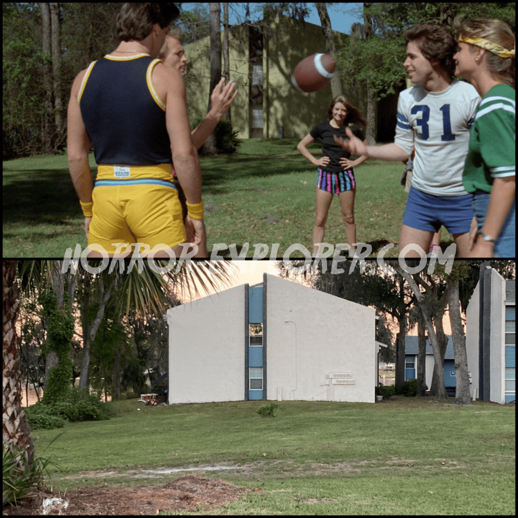Blood Rage AKA Nightmare at Shadow Woods AKA Slasher was filmed in 1983 in Jacksonville (and New Jersey), but was not released until 1987. Louise Lasser & Mark Soper star as mother and twin sons, one of which is slashing his way through the residents of their apartment complex.