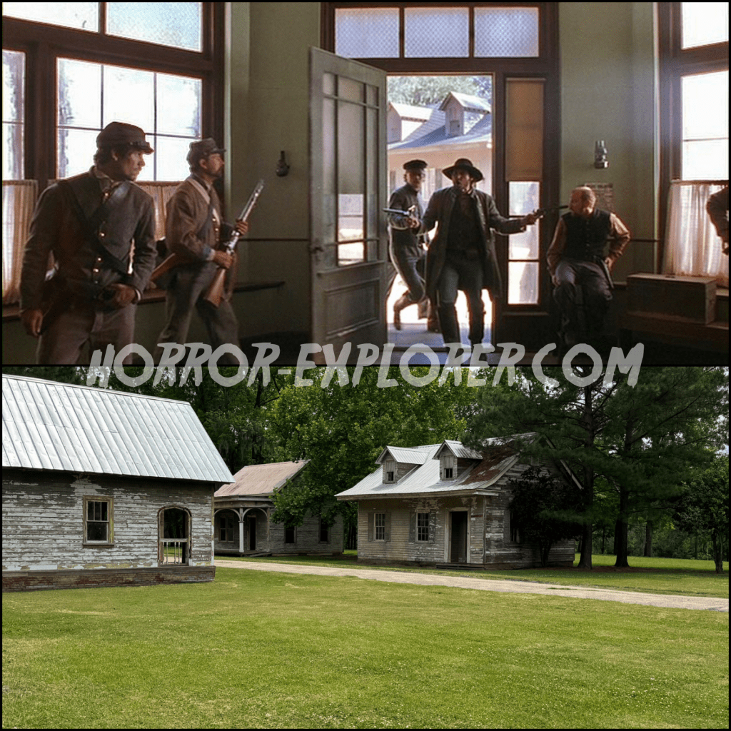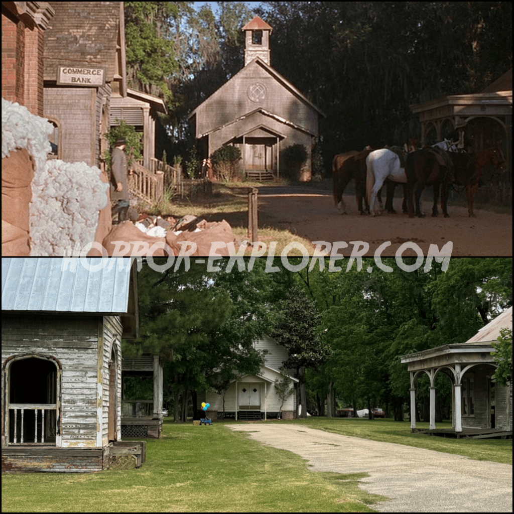 The set was first constructed for Tim Burton’s Big Fish (2003), and it was left standing after filming was completed. It was reused for the opening of Dead Birds shortly after.