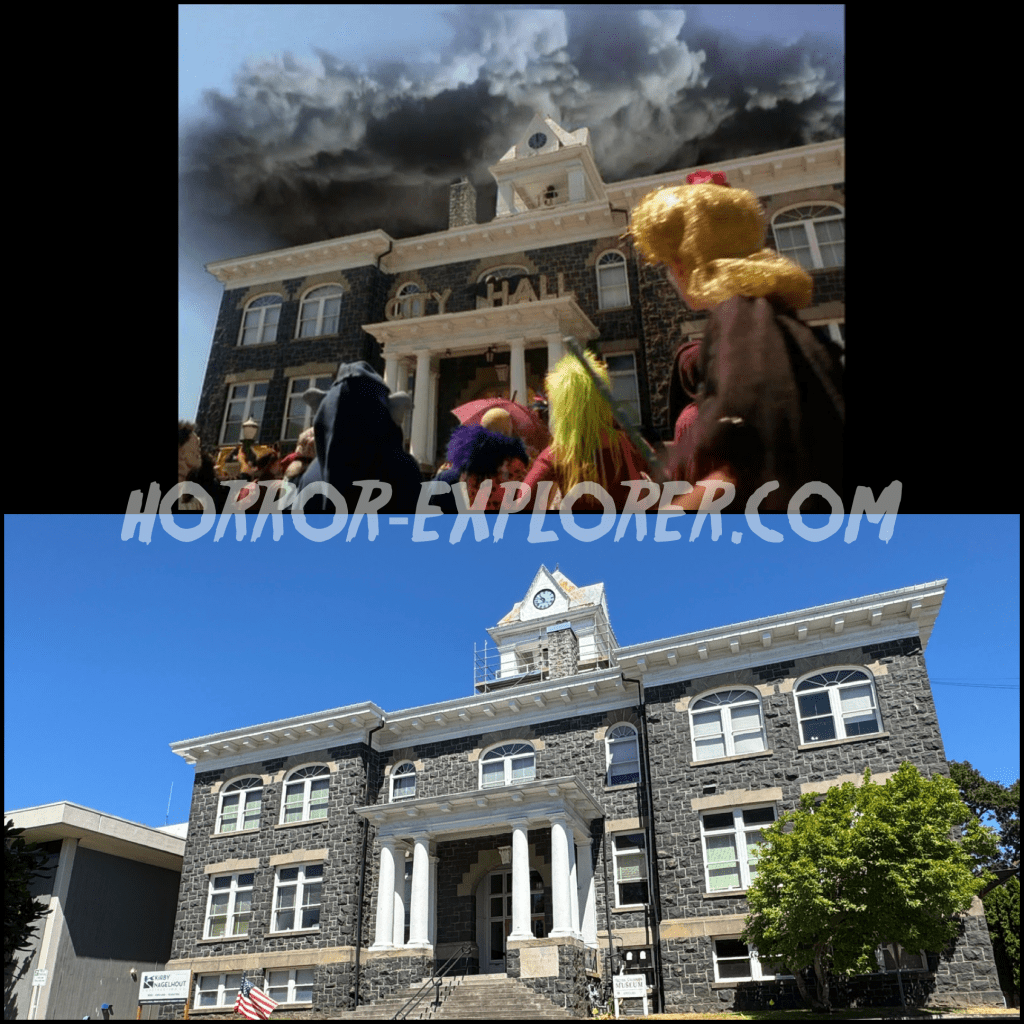 Many of the other shots of the shops in Halloweentown were filmed right in front of the courthouse as well.